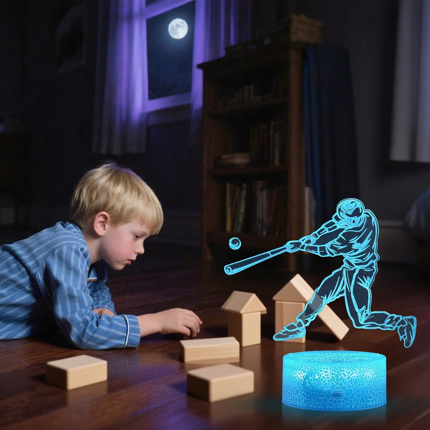 Bring stadium vibes to any room with this 3D illusion baseball lamp. An optical acrylic panel is laser-engraved with a baseball player design, and when the base lights up, the image appears to pop in three dimensions for a striking visual effect.