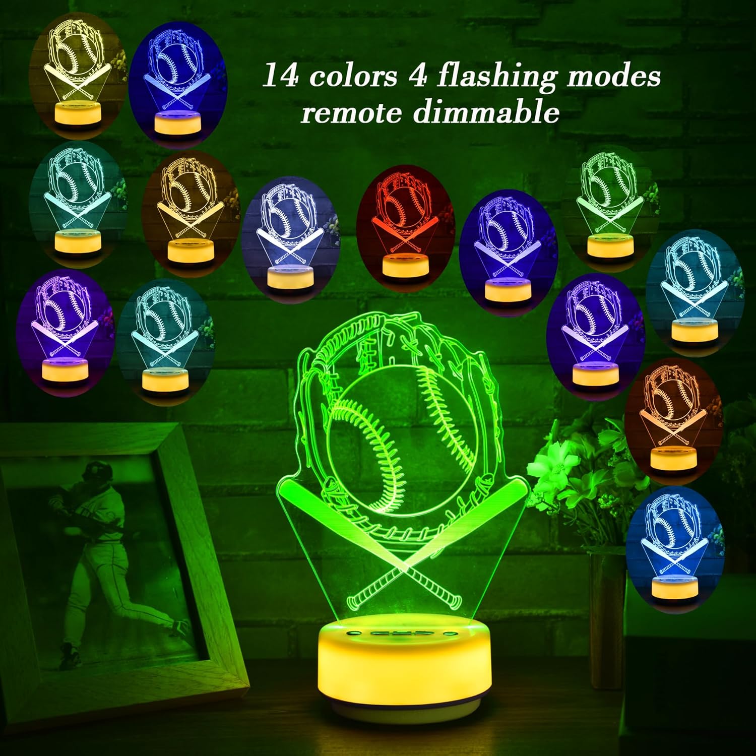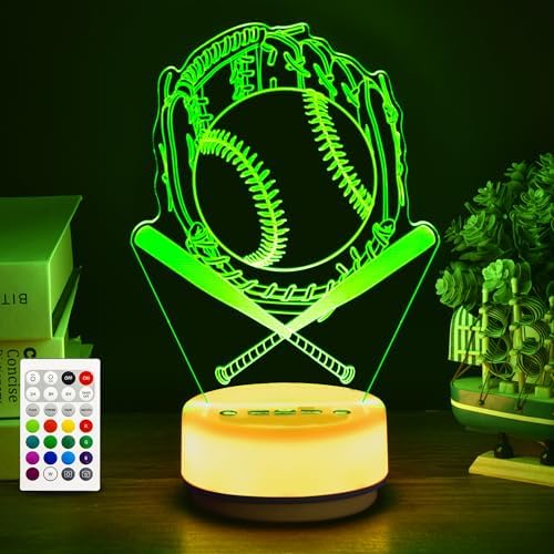What’s included – Baseball night light unit with base and acrylic panel, remote control, and user-friendly operating instructions. ( Batteries are not required for the basic plug-in mode, and battery use is optional depending on your setup.)
