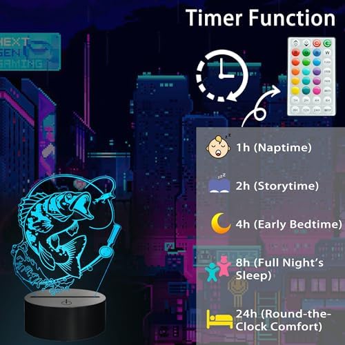 This 3D fishing night light makes a thoughtful gift and a versatile decor accent. It’s perfect for birthdays, holidays, housewarmings, or graduations. Use it in a bedroom, nursery, playroom, study desk, or living space to add a distinctive touch with a sea-inspired vibe.