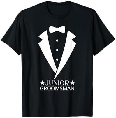 Designed for junior groomsmen and other boys in the wedding party, this tee features a playful “Junior Groomsman” message paired with a bow-tie graphic. It’s a simple, comfortable way to dress for photos, rehearsal dinners, and the wedding day.