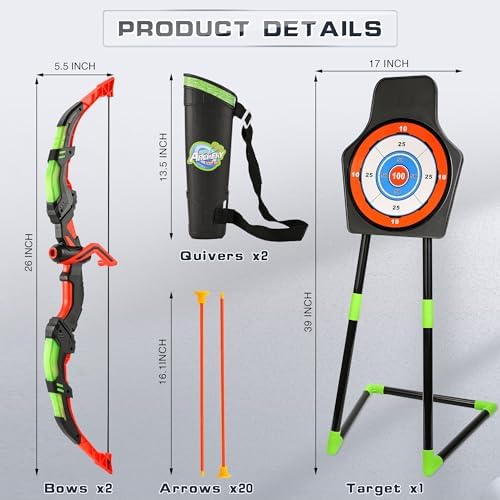 Portable and travel-ready. This set includes 2 bows, 20 suction arrows, 2 quivers, and 1 standing target. Its compact size and lightweight construction make it easy to take to the park, during camping, or on family outings. It’s an enjoyable way for kids to explore archery wherever they go.