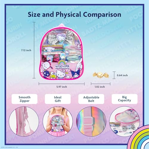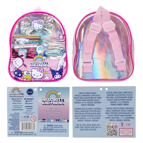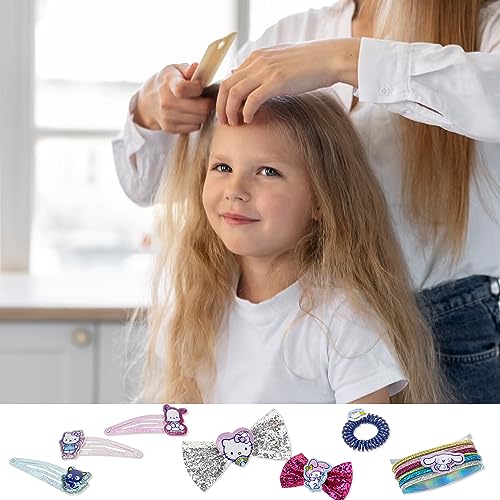 It solves the common problem of scattered accessories by delivering a complete, ready-to-wear kit: 3 glittery snap clips, 1 large glittery silver bow, 1 small pink glittery bow, 7 elastic hair ties, and a clear PVC backpack featuring Hello Kitty and Friends. Unlike smaller kits that leave you hunting for matching pieces, everything fits neatly in the included gift bag for easy storage and travel, letting her glam up anywhere.