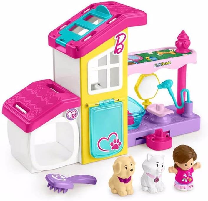 Designed for toddlers and preschoolers ages 1–5 who love Barbie-style pretend play and pets, this Barbie-themed Little People pet care playset blends whimsy with a two-story layout for bigger imagination. It includes 1 Barbie figure, Honey the dog, Blissa the cat, and a brush accessory, giving little caregivers everything they need to start grooming and caring for pets right away. The two floors create extra space for different scenes and stories, making playtime feel endless.