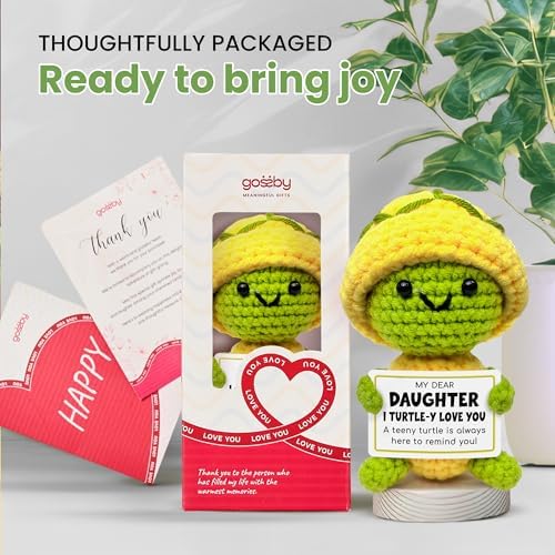 This tiny knitted turtle with a positive message is the perfect gift for daughters of all ages—from teens to adult daughters. It solves the “what should I give?” dilemma by delivering warmth, encouragement, and a personal touch from mom or dad. Its compact size makes it portable enough to brighten a desk, a car dashboard, or a bedside table wherever your recipient goes.