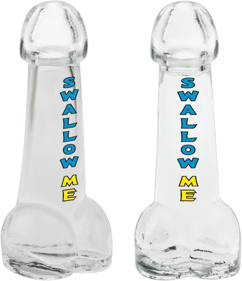 This novelty shot glass brings Las Vegas vibes and a playful edge to any party. It features a clear glass body with bold blue “Swallow Me” text, creating a cheeky centerpiece that guests notice. The silhouette is uniquely shaped to stand out on the bar or at the table.