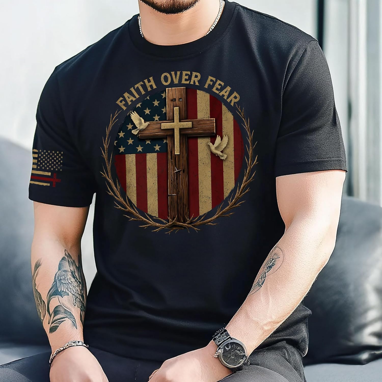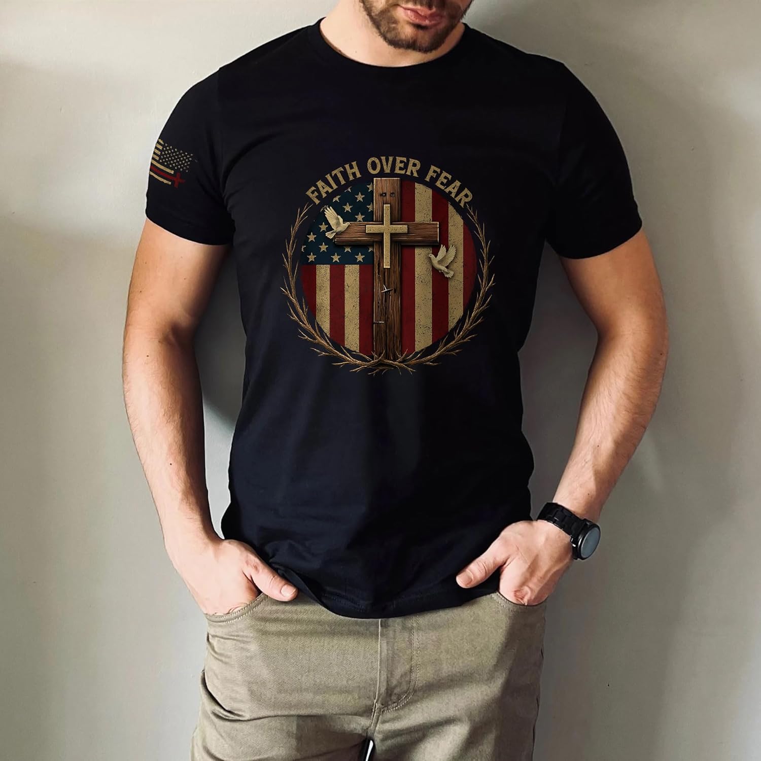 The Faith Over Fear Shirt is a purposeful addition to any man’s wardrobe. Designed for daily wear and meaningful moments, it features a bold cross design and a Bible verse that proudly expresses faith in everyday life—whether you’re headed to worship, Bible study, church events, or casual outings.
