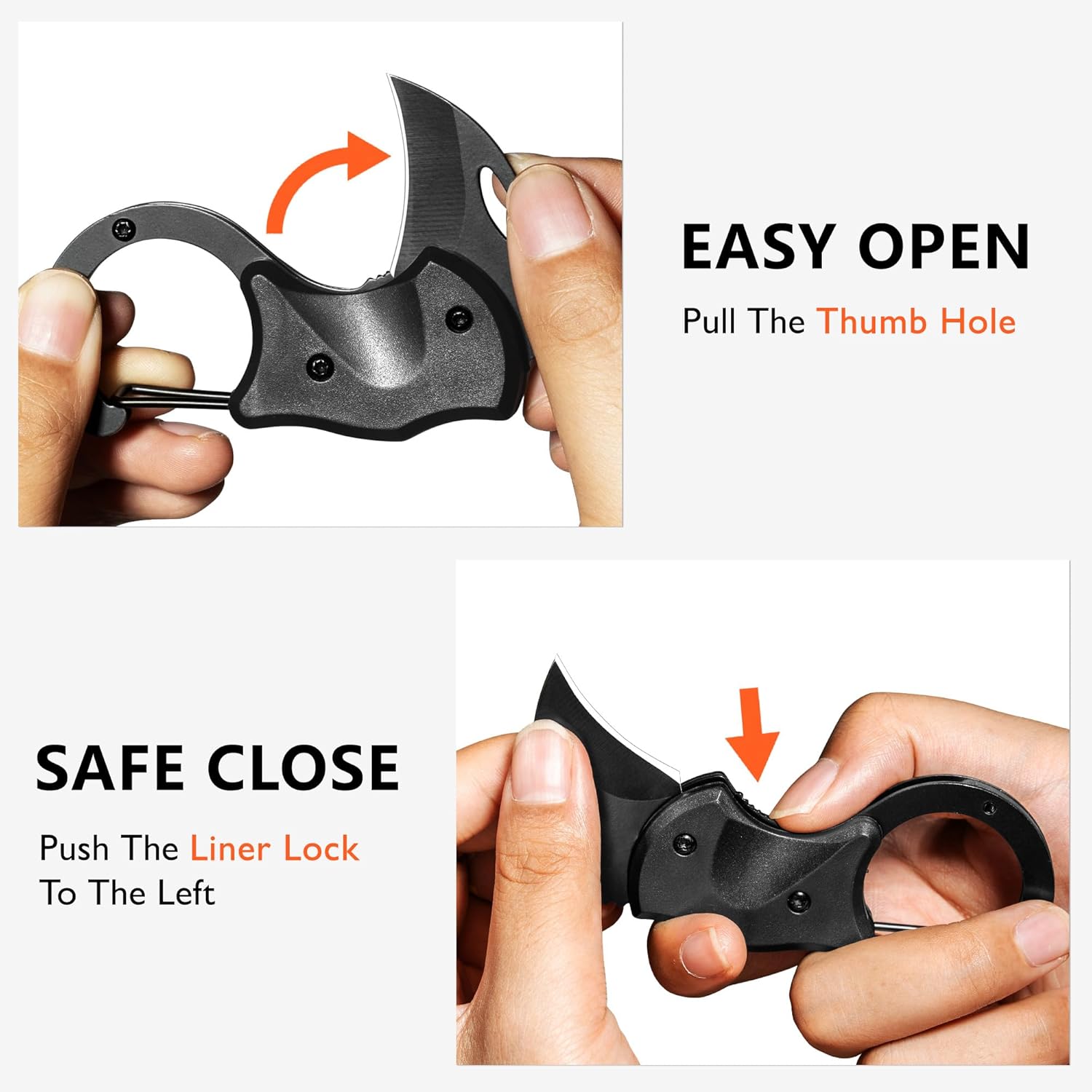 This compact karambit-style pocket knife is built for everyday carry and quick, controlled cutting. Its razor-sharp blade is made from high-quality stainless steel for durability and reliable performance wherever you go. Despite its precision-focused design, the knife remains practical for daily tasks and outdoor use.