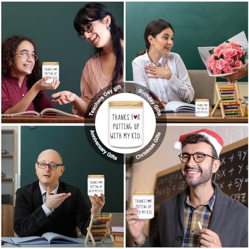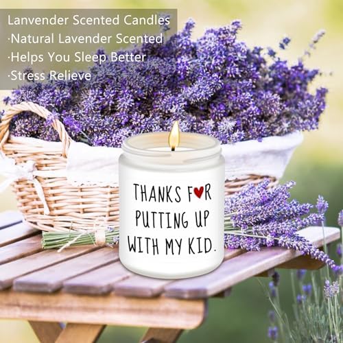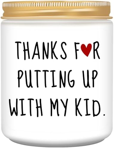 - Teacher Appreciation Gifts: This funny lavender scented candle comes with a nice make-the-teacher smile phrase: THANKS FOR PUTTING UP WITH MY KID! This is a great and funny gift for students to give to their teacher. Great gifts to show your appreciation and love for the teacher.