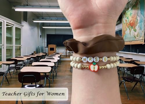 - TEACHER BRACELET SET: This personalized teacher bracelet set contains one bracelet with MRS and initial letter, another bead bracelet with red apple charm. Customize it with Miss, Mrs or Ms and initials to make a special gift for her or yourself. This is a must have in any teacher’s wardrobe!