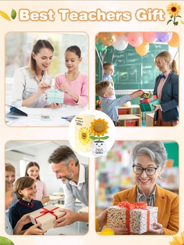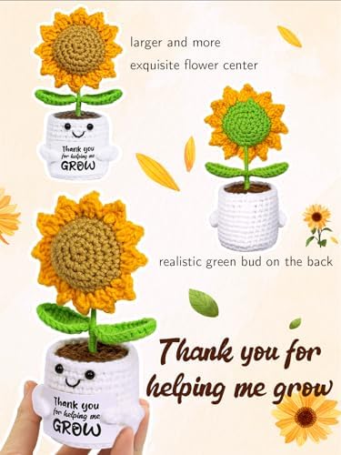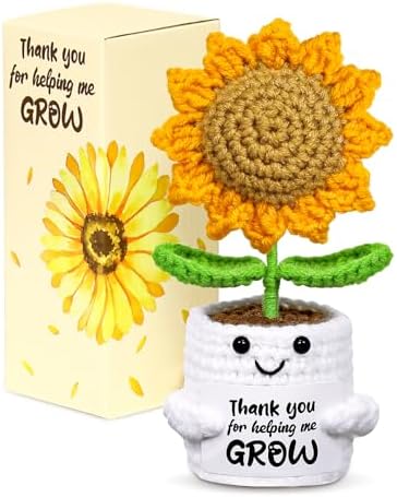 - Best Teacher Appreciation Gifts – Show gratitude with a knitted sunflower, “Thank you for helping me grow” symbolizing growth and admiration. This positive crochet sunflower planter can be a teacher gifts for an art teacher, music teacher, maths teacher, science teacher, dance teacher. Perfect for teacher appreciation events, it honors their dedication and brightens their day