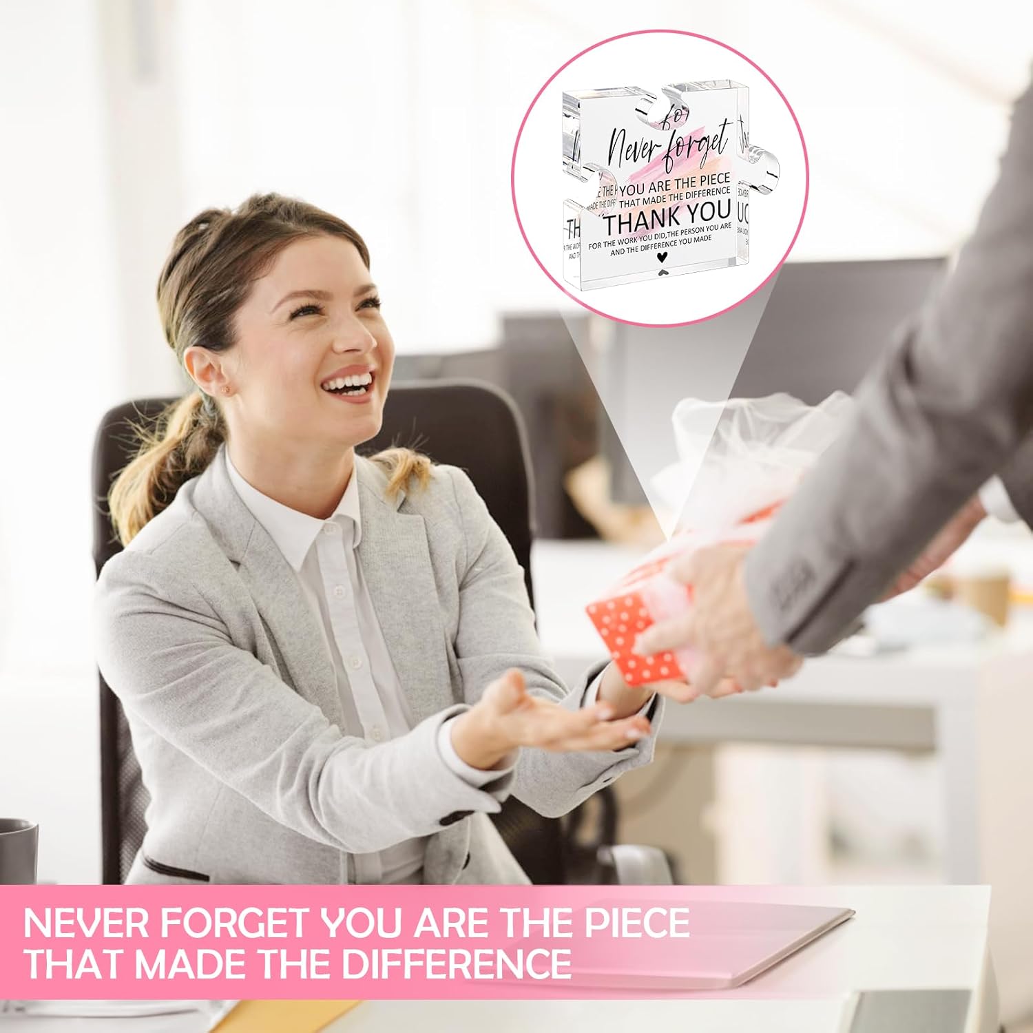 - Meaningful Inscription: The plaque bears the touching message, “Never forget you are the piece that made the difference. Thank you for the work you do, the person you are, and the difference you made,” expressing deep gratitude and appreciation